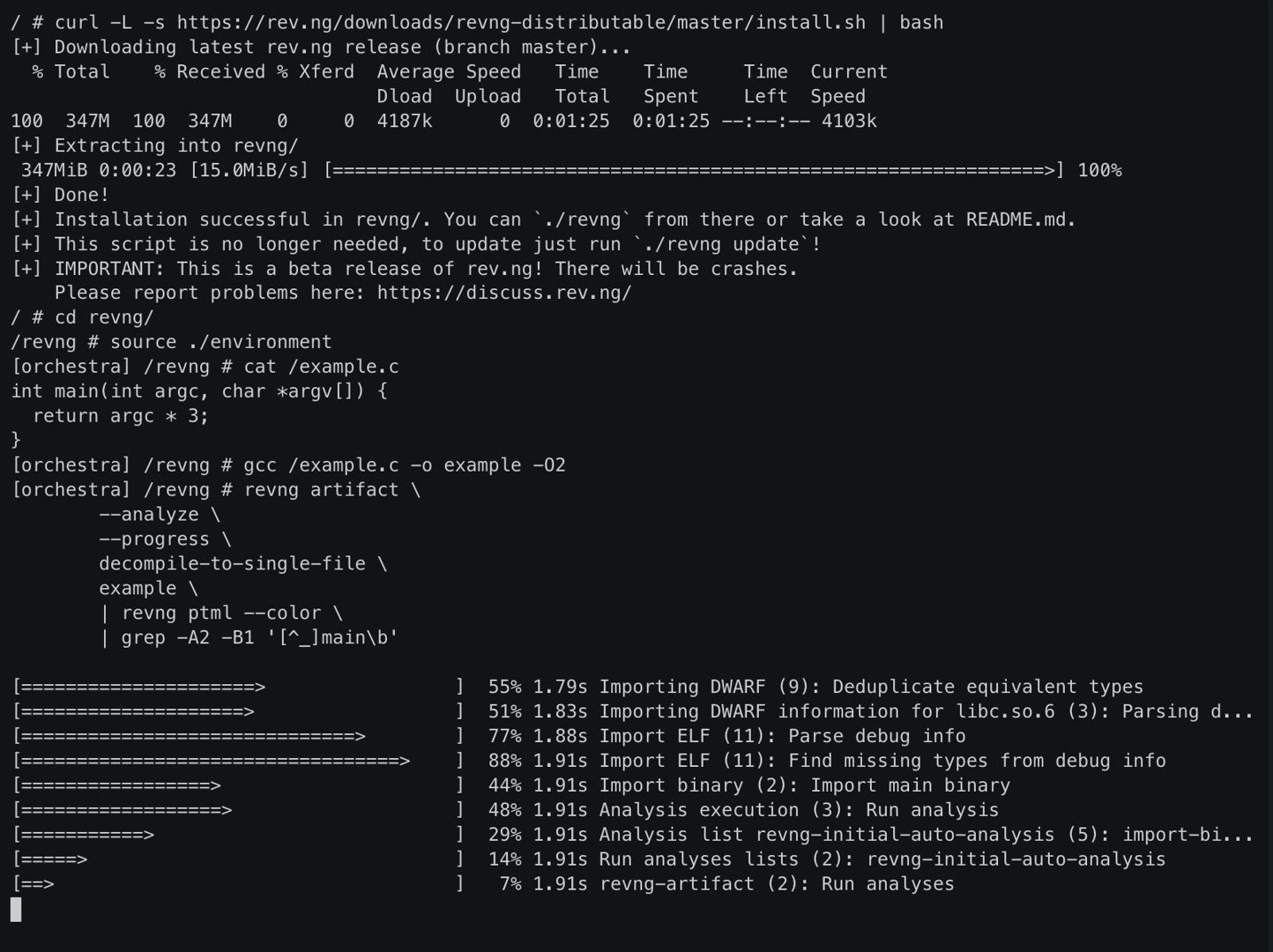 - From zero to decompiled C code (interactive demo on terminal)